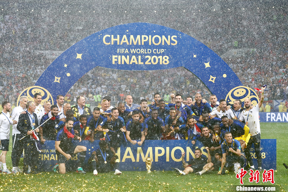 材料图:2018俄罗斯世界杯,法国队4:2打败克罗地亚,时隔20年再次捧起大力神杯。 中新社记者 富田 摄(图文无关)